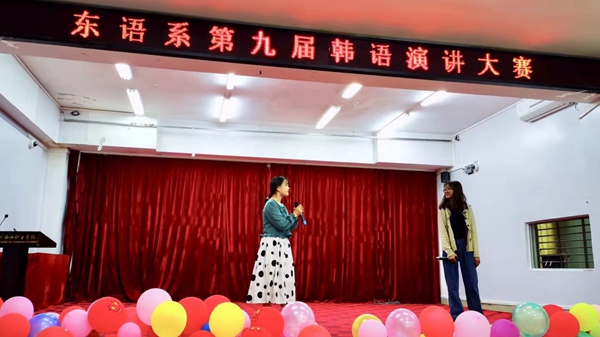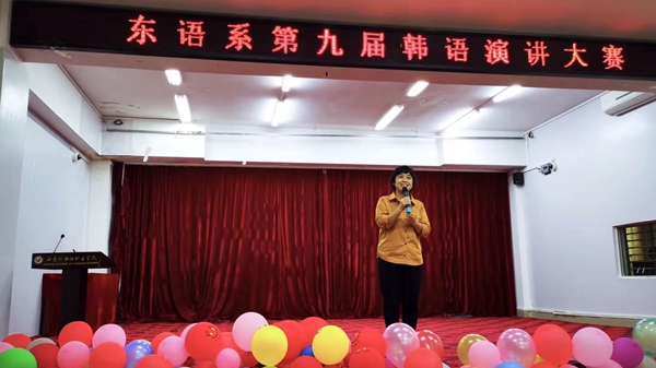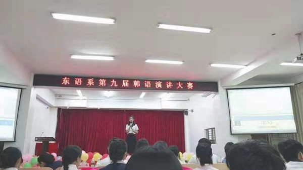 冬季小学期的第二周,东语系第九届韩语演讲比赛于11月25日下午14:30分在多功能报告厅展开。东语系主任郭艳萍教授,韩语专业全体教师及两位外教出席了本次活动并担任评委。韩语专业学生到场观看了比赛。