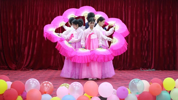 比赛中场,首尔社的两位同学为大家带来了歌曲《稻草人》,动听温婉的歌声舒缓了比赛的紧张气氛,观众们也反应热烈,掌声不断。第三环节猜单词由苏一全外教与选手们一起完成。在限时的一分钟内,选手们使出“洪荒之力”来说明单词,手舞足蹈地样子使得现场笑声连连,气氛火热。随着16应韩(502)班的同学带来动感热辣的《舞蹈串烧》,现场气氛达到最高潮,此次比赛落下帷幕。