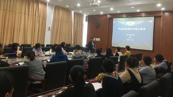 应我系邀请,广西外国语学院蔡杰教授于11月28日下午15时在我院综合楼7-1会议室,作了题为“外语类教师如何进行教学与科研”的专题讲座。东盟语言各专业所有教师聆听了讲座。本次会议由东语系主任郭艳萍教授主持。