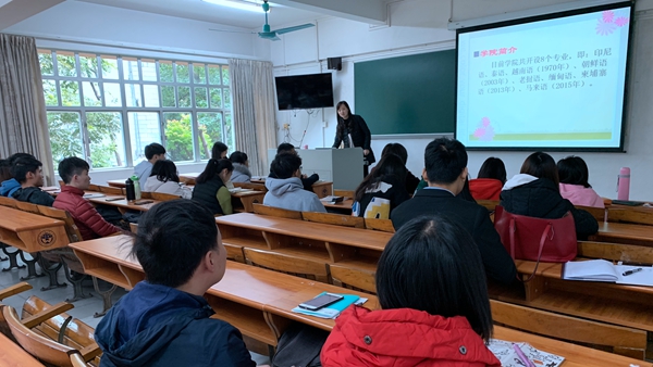 老挝语教研室刘颖君主任安排大一与大四年级交流分享会