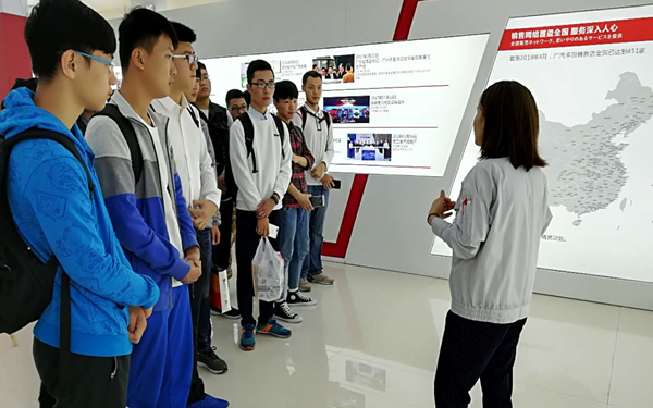 为了让师生尽快了解广汽丰田汽车有限公司,郑女士先为我们简单介绍进入企业车间的各种安全须知后,引导我们学习企业文化的起源变化和发展。
