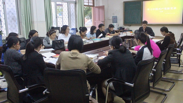 王诒奎书记用了近2个小时的时间,带领教师党员对党章进行了通篇学习,对亮点、关键点部分进行了重点学习和阐述。王诒奎要求,全体党员要认真学习和履行党章,增强党性观念、增强党员意识,用党规党纪规范自己的言行,立德修身、身先示范,争做合格党员。教师党员在讨论中表示,将扎根教学一线,积极作为,主动解决学生问题,以强烈的责任心,教育、培养、引领好学生。