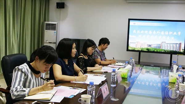 10月26日下午,广西民族大学相思湖学院外国语言文学系副主任吴其艳、国际交流部部长莫凡、外语系越南语教研室主任黄广乾、外语系综合教研室主任黎华在格物楼六楼会议室同我们一起讨论了东盟语种专业建设、师资培养、越南语及印尼语培养计划的撰写和修订情况以及国际交流等的相关情况。