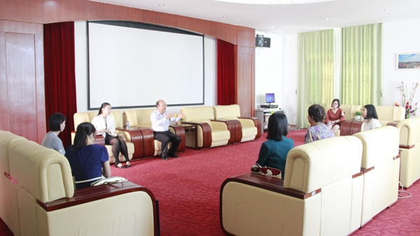 2017年10月26日上午,广西民族大学东南亚语言文化学院的覃秀红副院长、陆进强副院长、越南语系主任梁茂华、老挝语系主任黎莉、马来语系主任赵丹热情地接待了我们。双方在招生宣传、课程设置、教材使用、合作办学、学生就业、师资培养等方面进行了深入的交流和探讨。