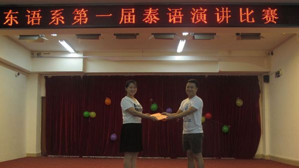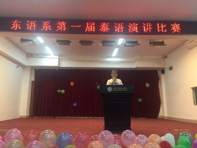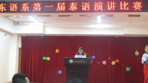 为了进一步激发广大学生学习泰语的积极性,促进学生间的学习与交流,通过比赛达到“以赛促学”的目的,提升应用型外语人才培养水平。泰语专业于6月26日晚8点在多功能报告厅举行了首届泰语演讲比赛。通过主题演讲、才艺表演环节,最终获得第一名的同学为黎火娇同学,第二名同学为陈萍同学,第三名同学为袁嘉慧同学。