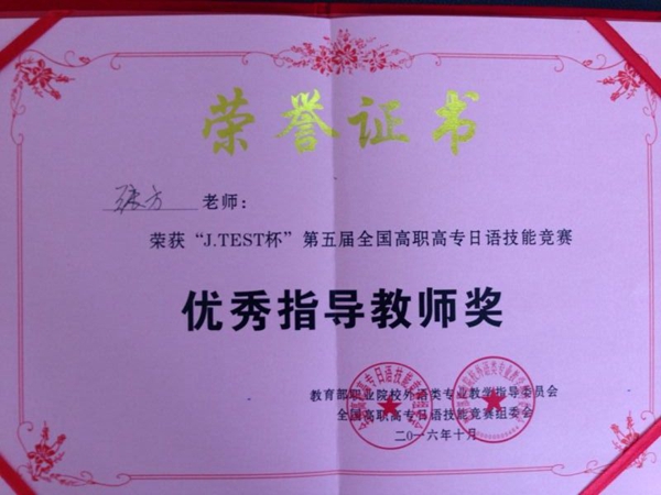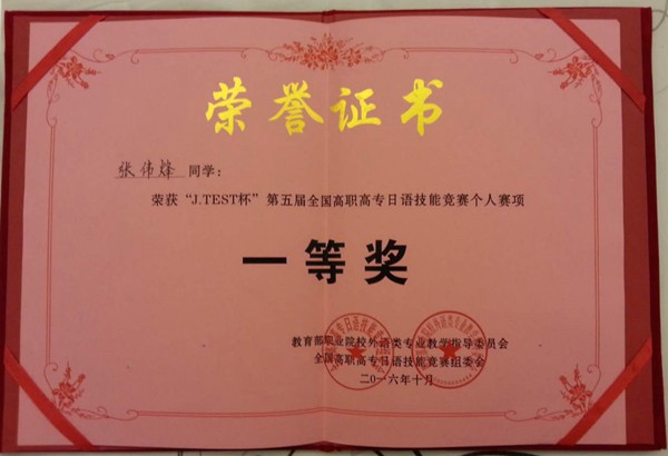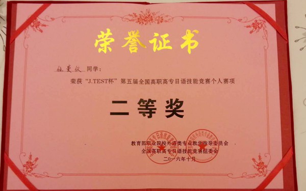 我系学生荣获“J.TEST杯”第五届全国高职高专日语技能竞赛一、二等奖
