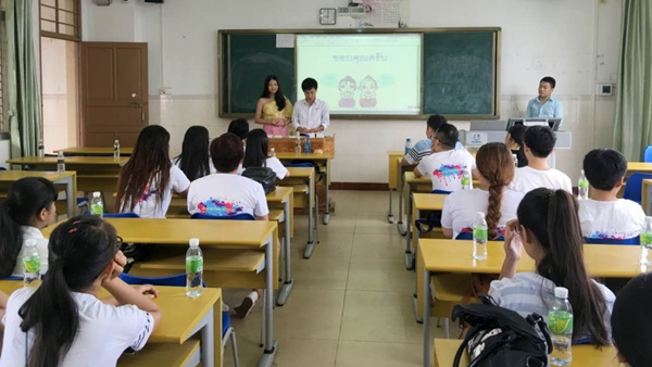 15级应用泰语专业学生黄思涵、唐龙担任主持人,他们流利的泰语表达和幽默风趣的主持风格赢得了大家的赞许。首先,王主任给大一新生寄语和对他们的要求,希望大家好好学习泰语,珍惜难得的机会。接下来到了提问时间,同学们就出国留学及就业等方面的问题向王主任踊跃提问。