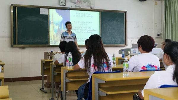 9月10号教师节,东语系应用泰语专业举办了2016级泰语专业介绍与就业前景分析会。我们很荣幸邀请了东语系王诒奎主任出席。此次专业介绍会由泰语专职教师赵鹏老师筹划并为2016级新生作题为泰语专业介绍与就业前景分析的讲座,泰语专职教师赵珏和泰国外教奈斯出席了介绍会。