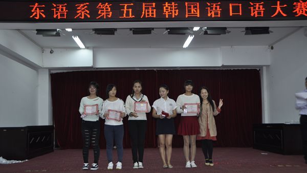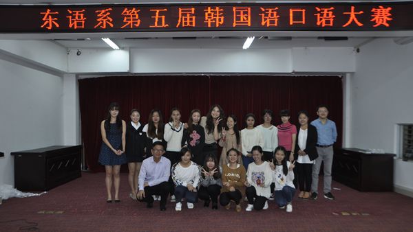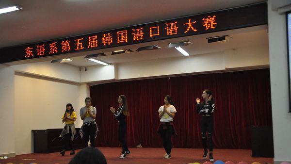 2014年12月14号,在学院领导及系领导的大力支持和关心指导下,在东语系老师的极力倡导和积极准备下,为了提高我系韩语专业学生的口语表达能力和应变能力,加强同学们学习韩国语的兴趣和热情,促进同学们间的交流,丰富大学生活业余生活,特举办“东语系第五届韩国语口语大赛”,并获得了圆满成功。