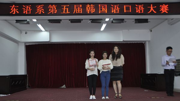 赛后东语系学生科长李振中、韩国外教金秦英等老师为学生颁发了奖状及丰厚的奖品,韩语专业教研室主任郭海燕老师做了总结性的讲话。