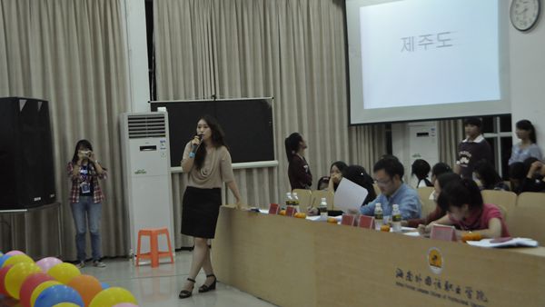 此次韩语演讲比赛邀请到韩语专业郭海燕、李振中、符向锋、金焱老师和韩国外教金秦英老师担任评委。比赛分为自命题演讲和知识问答及猜单词三个环节,评委根据选手演讲的语言、内容和回答提问的技巧三个方面进行评分。和以往不同的是,此次比赛不仅重视语言技巧的运用和语言功底的扎实程度,同时将个人演讲技巧的表现及机变能力也计算在参赛成绩之中,将比赛的性质提升到考验选手个人素质的综合性演讲。比赛采取了自命题演讲的形式,选手们演讲的主题非常广泛,涉及了亲情、友情、大学生活、中国文学等许多方面。此次比赛共十二名选手参加,选手们标准的发音,抑扬顿挫的声调,丰富多彩的内容,慷慨激昂的演讲,使得比赛扣人心弦。他们表现各有特色,或声情并茂,或意味深长,或诙谐幽默,尤其是回答提问及猜单词环节,充分考验了选手们临场应变能力,他们机智的回答,赢得现场阵阵喝彩和掌声。
