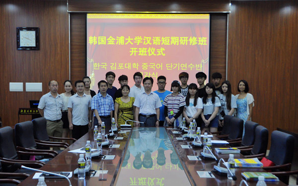 6月26日下午,我院第四届韩国金浦大学汉语短期研修班在综合楼7楼第一会议室开班,学院杨学前副院长,对外合作交流处、教务处、东语系等部门负责人、研修班授课教师代表以及来自韩国金浦大学的11名学生参加了开班仪式。