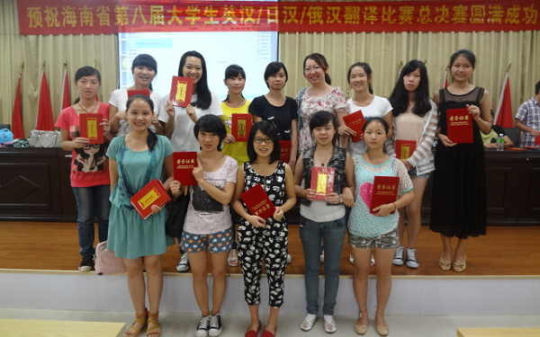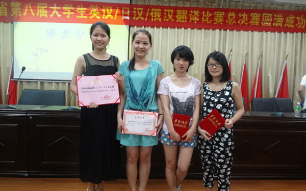 喜讯传来,我系日语专业11应日班吴雨静、11应日班刘婷、11商日2班胡滋滋同学在近日海南省举行的第八届大学生翻译比赛中以优异的成绩包揽了冠亚军。11应日班吴雨静获得一等奖(指导老师—程慧慧)、11商日2班胡滋滋(指导老师—陈春燕)、11应日班刘婷(指导老师—王纾宁)、获得二等奖。我系陈春燕、程慧慧、王纾宁三位老师均获“优秀指导教师”荣誉称号。