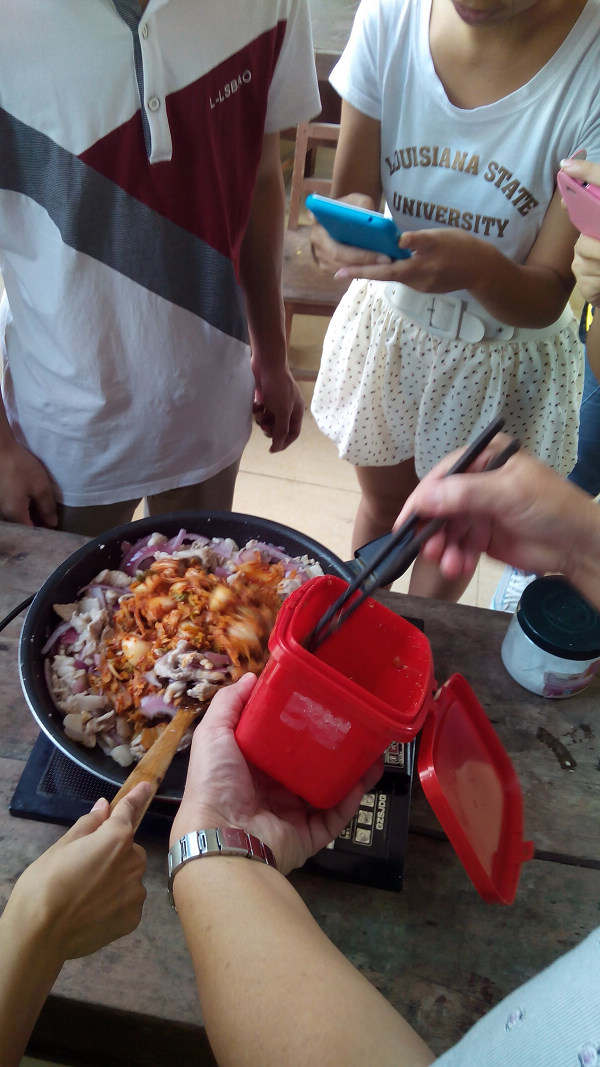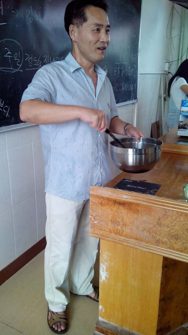 金仁焕老师与学生讨论做韩国料理的方法