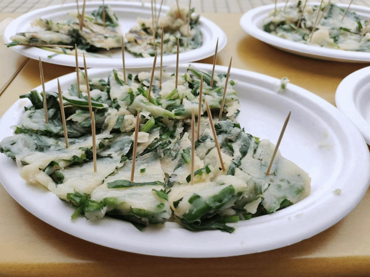 (1)传统韩国菜肴展示:参与者现场品尝到辣炒年糕与鱼饼、紫菜包饭和韭菜饼以及其他韩国传统美食;
