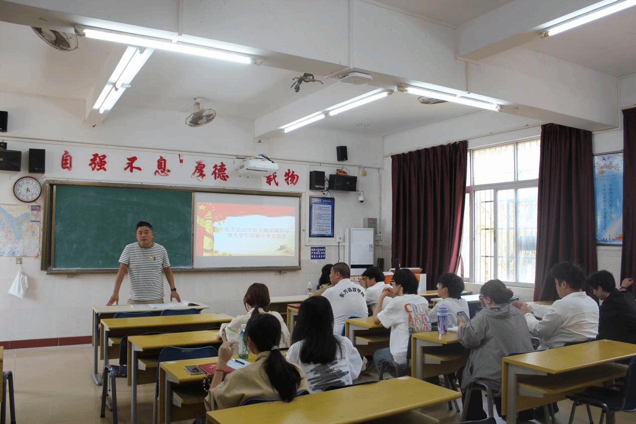 2025年3月24日下午4点30分,在2301教室,东方语言学院团总支学生会邀请本学院第三党支部书记陈在兴老师为学院全体预备党员、入党积极分子、团员等同学开展了党建带团建主题团课学习活动。