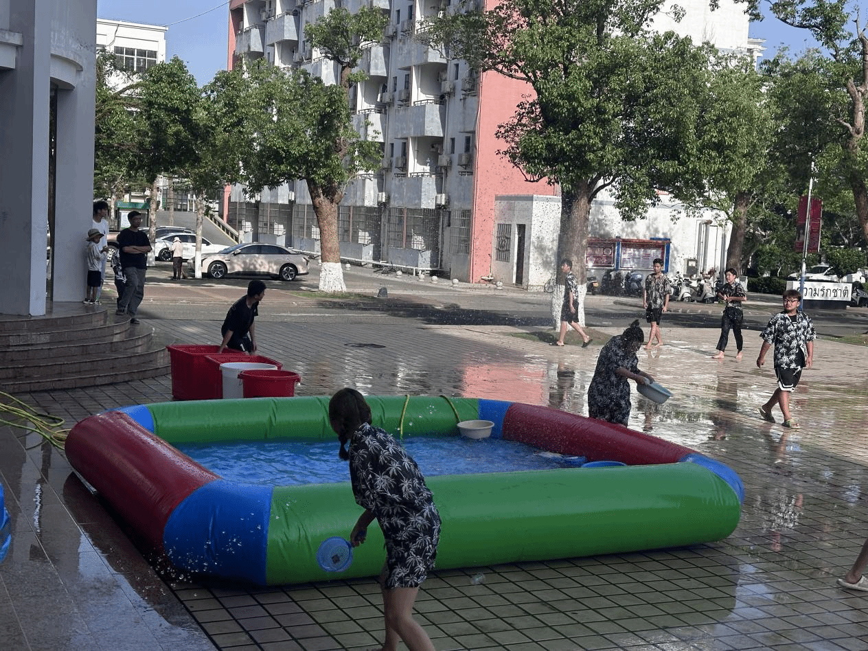 夏日骄阳似火,校园里的泼水节活动现场却满是清凉与欢腾。同学们身着色彩斑斓的盛装,宛如一朵朵移动的繁花。