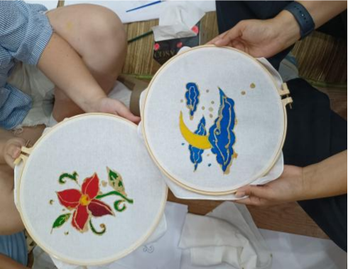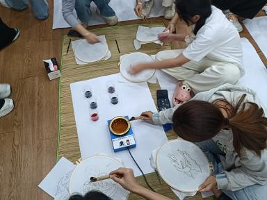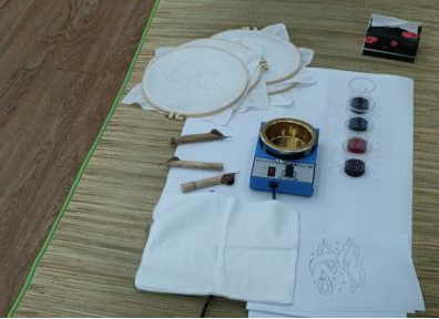 听完后,同学们跃跃欲试,迫不及待想要亲身体验一下。大家围坐在一起,开始动手制作自己的巴迪克蜡染作品。有的同学设计出了精美的花卉图案,有的同学则画出了可爱的动物形象,每一个作品都充满了创意和个性。