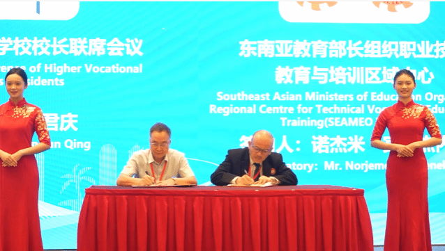 会议开幕式由海南省教育厅领导、全国高等职业学校校长联席会议领导、东南亚教育部长组织职业技术教育与培训区域中心(SEAMEO VOCTECH)领导、泰国代表、老挝代表、柬埔寨代表、越南代表、马来西亚代表分别致辞,会议签订了全国高等职业学校校长联席会议与东南亚教育部长组织职业技术教育与培训区域中心(SEAMEO VOCTECH)合作备忘录,宣布联合体成立及宣读《联合体章程》,并发布了双百计划项目,将推动100所院校与100家中资企业建立合作,校企结对,定向培养技术人才,满足海外用工需求。