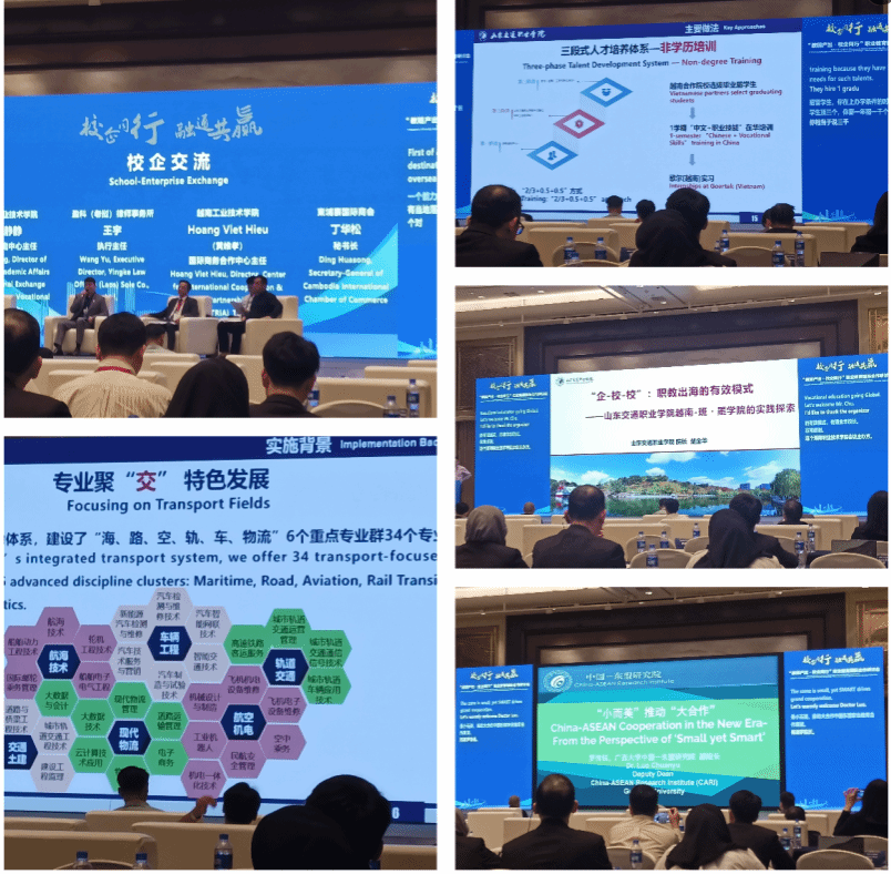 4月24日至25日会程中,教育部职业教育发展中心林宇主任、东南亚教育部长组织职业技术教育与培训区域中心(SEAMEO VOCTECH)领导、全国电子商务职业教育教学指导委员会常务副主任陆春阳、江苏理工学院职业教育研究院院长庄西真等专家做了主旨报告,来自广东创世纪集团股份有限公司董事长特别助理张伟、海尔智家供应链华南园区招聘总监干志勇等企业家代表做了企业分享发言,来自老挝铁路职业技术学院代表、马来西亚私立教育协会主席ELATSOLAN MOHAN、滨州职业学院党委副书记申保忠、德宏职业学院党委副书记校长何超、山东省职业教育研究院院长陈桂林、广西大学中国-东盟研究院副院长罗传钰、山东交通职业学院院长楚金华等学校代表做了院校交流分享发言。并于25日下午进行了自贸区考察活动。