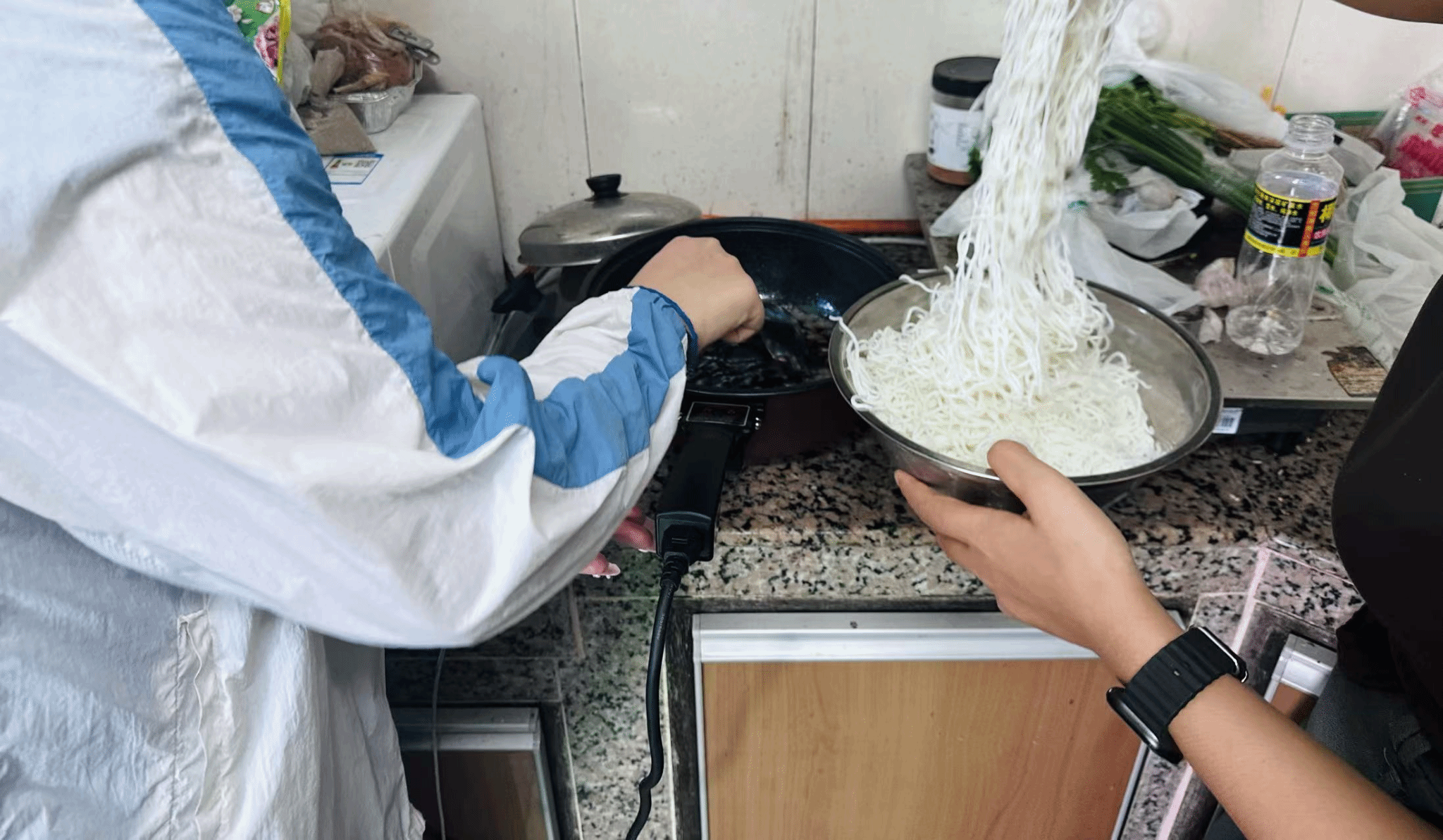 2024年11月14日下午,老挝语外教王阿金和老挝语教师梁瑜带领23级应用老挝语专业学生积极参加冬季小学期老挝美食制作与饮食文化体验活动,并在外教宿舍进行老挝美食制作实操。