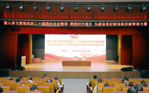 讲课中,陈正强系统阐释了党的二十届四中全会的重大意义,从历史、理论、实践、政治、世界五个维度解析全会精神实质,介绍“十四五”时期国家发展的重大成就与“十五五”时期的主要目标、战略任务和重大举措。结合海南自贸港建设实际,他带领大家再次学习了习近平总书记关于海南工作的重要讲话精神,并介绍了海南自贸港取得的“一个标志跨越、四个显著突破、五个明显成效”的建设成就,指出自贸港从“顺利开局”到“成型起势”的跨越,是全省上下学习贯彻全会精神和习近平总书记重要讲话精神的生动实践,封关运作的历史性机遇为广大干部、青年提供了广阔舞台。