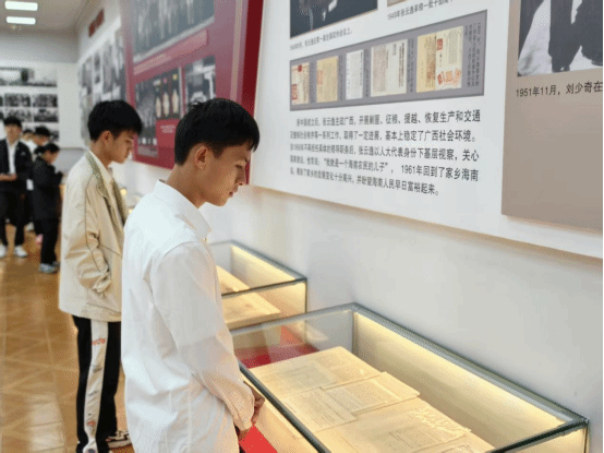 宣誓结束后,师生有序参观张云逸纪念馆。通过珍贵的历史文物、详实的图文资料和生动的场景复原,大家深入了解了张云逸将军从琼崖革命到北伐战争、从百色起义到万里长征的光辉历程。特别是在"琼崖革命斗争"展区,同学们驻足凝视展柜中斑驳的军装和手稿,感悟革命先驱在艰苦环境下坚守信仰、浴血奋战的精神品格。