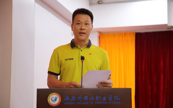 荣获2022年海南省优秀教师荣誉称号的国际商务系钟阳惠作为教师代表发言