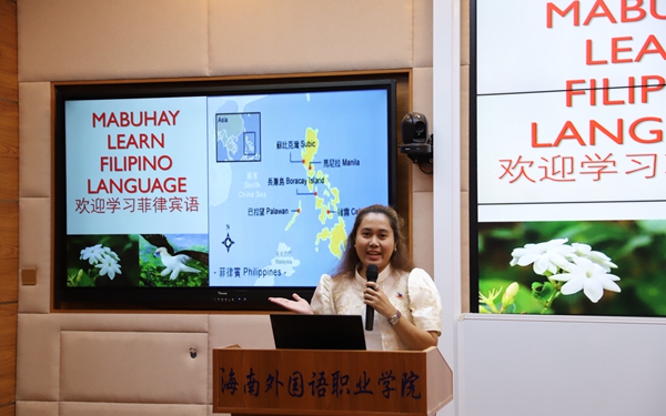 图为应用菲律宾语外籍教师作专业宣讲