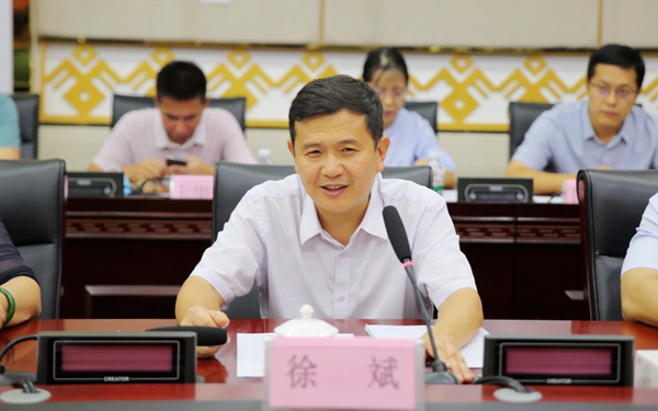 琼中县委徐斌书记在仪式上致辞,首先感谢我院近十年为琼中基础教育特别是乡村教育发展作出的积极贡献。他指出,在全省上下如火如荼推进自贸港建设的时期,琼中县委以“旅游” “物流” “康养”为重点,依托琼中地处国家生态文明试验区的独特山水优势,全力打造县域特色旅游品牌;依托湾领物流园区,全力推进国际化物流加工基地建设;依托百花岭风景名胜旅游区,全力促进康养产业发展,琼中近年来的生态环境、营商环境持续优化,经济社会发展、教育医疗服务、乡村振兴等方面均取得了明显进步。他表示,双方要进一步深化全方位战略合作,共同致力于推动在人才培养、基础教育、旅游文化等领域的交流与合作。希望我院继续发挥“语种多” “专业全” “师资强”的教育资源优势,为琼中进一步服务海南自由贸易港建设、推进教育事业发展、促进乡村振兴等工作提供强有力的支撑。