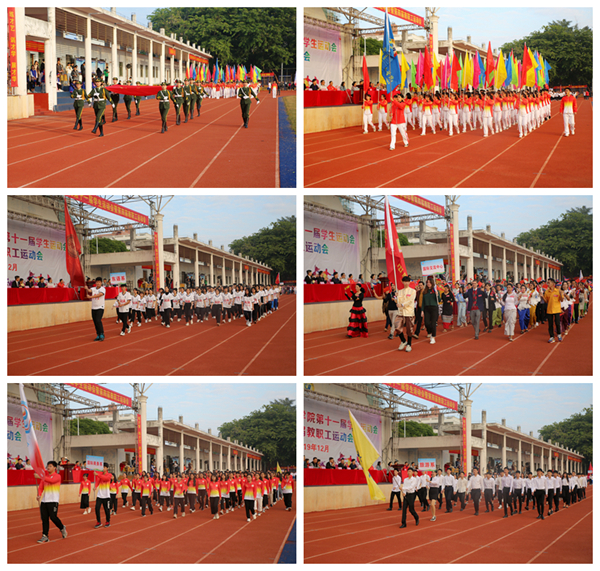 秋风送爽暖阳照,扬帆逐梦正当时。12月11日上午,我院第十一届学生运动会暨第四届教职工运动会开幕式在田径运动场举行。学院党委书记曾锋、院长李渝凤、副院长杨学前、党委委员梁松出席开幕式,各部门、系部主要负责人和全体师生员工共同参加开幕式。杨学前副院长主持开幕式。