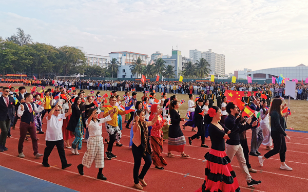 作为一所外语类高校,我院举办的运动会国际化氛围浓厚。来自不同国家的外籍教授和留学生与大家同欢同庆,尽展风采。