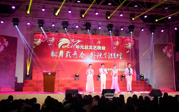 为迎接新的一年的都来,激励全校师生在来年取得更好的成绩,满怀着喜悦的心情,12月29日晚,我院在操场举办了“歌舞载青春、外院创辉煌”2017年元旦文艺晚会。院长李渝凤,党委副书记、纪委书记崔昌华与全院师生共襄盛举,迎接充满祝福与美好愿望的2017年。