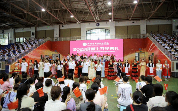 弦歌不辍,芳华待灼,莘莘学子,共续华章。9月14日下午,开云kaiyun登录入口2023年新生开学典礼拉开帷幕。秉承着“会通中外、德能双馨”校训,来自五湖四海的两千五百多名新生齐聚一堂,满载憧憬与希望,以昂扬奋斗的青春姿态,共同开启海外院逐梦之旅。学校领导陈正强、黄学彬、梁松、杨毅、时秀梅,各部门主要负责人、二级院(部)党政主要负责人、2023级新生及其辅导员以及老生代表共同出席开学典礼。