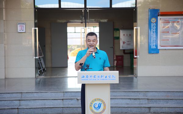 进驻仪式上,学院物业服务中心职工代表林及策进行了表态发言。