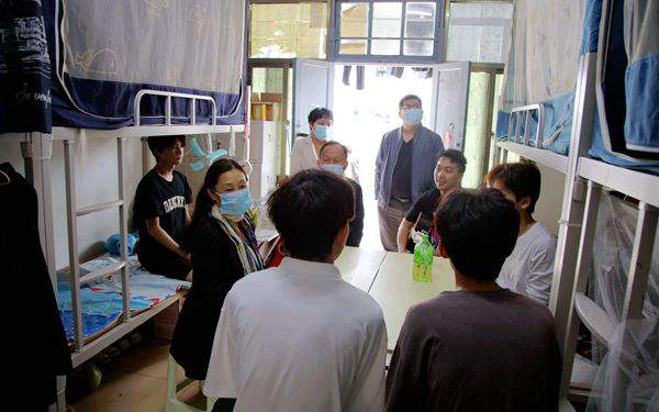 在学生宿舍,佴建乔书记与同学们亲切交谈,了解学生诉求,提醒大家做好个人防护,加强身体锻炼,落实好每日消毒等工作。学生们表示,感谢学院领导的关心关爱,会理解和积极配合学院防疫工作,共同维护好校园的安全。
