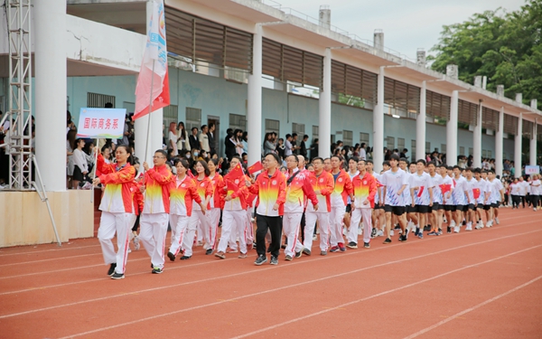 英语系、国商系、旅游系、东语系、西语系和人文艺术系的同学们先后呈现了一场大型团体体操表演,他们舞动着青春与梦想,为即将争锋赛场的运动健儿们鼓舞,他们青春的风采不只在书本上,更在运动与拼搏的热情之中。体育竞技与舞蹈艺术的生动结合表现了我院丰富多彩的校园文化。