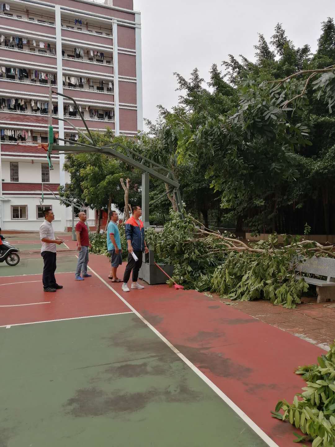 10月23日下午,根据学院防台风工作要求和我处李南群处长的部署,我处由韩吉光科长带队,符气刚科长,吴清君同志、吴清亮同志、陈诗友同志一同深入学院南苑学生公寓集装箱处,学生宿舍、发电机房、食堂、平房等公共区域安全检查工作。