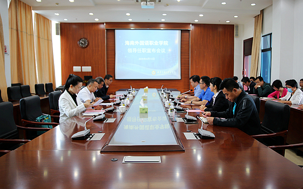 4月13日上午,我院在综合楼7楼第一会议室召开领导任职宣布会议,宣布了黄培怡同志任我院党委委员、纪委书记、监察专员。海南省委组织部干部四处副处长李正仁、海南省教育厅党委办公室主任莫泉平、海南省纪委监委组织部四级调研员张芷瑜出席会议。我院党委书记曾锋主持会议。