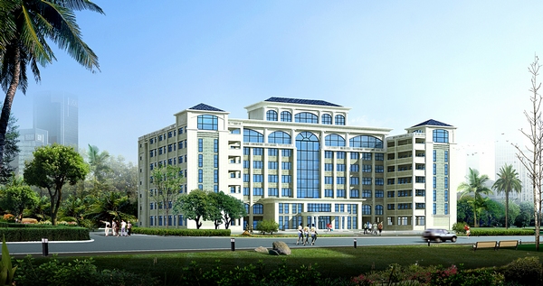新教学大楼造型设计以人为本,用宜人的尺度和色彩营造出庄严而不失活泼的校园的氛围。采用建筑构件加以色块区分以体现建筑的现代感,并与学校原有建筑相统一协调。建筑风格以轻灵、空透为主、避免产生拥塞、封闭的空间效果,以体现临海带气候的建筑特点。白色窗框,透明玻璃,宽阔绿化的外廊,局部绿化使立面造型新颖、简洁和亲切感。在建筑色彩设计上宜采用明亮柔和的色彩,强调热带滨海城市学校特点。