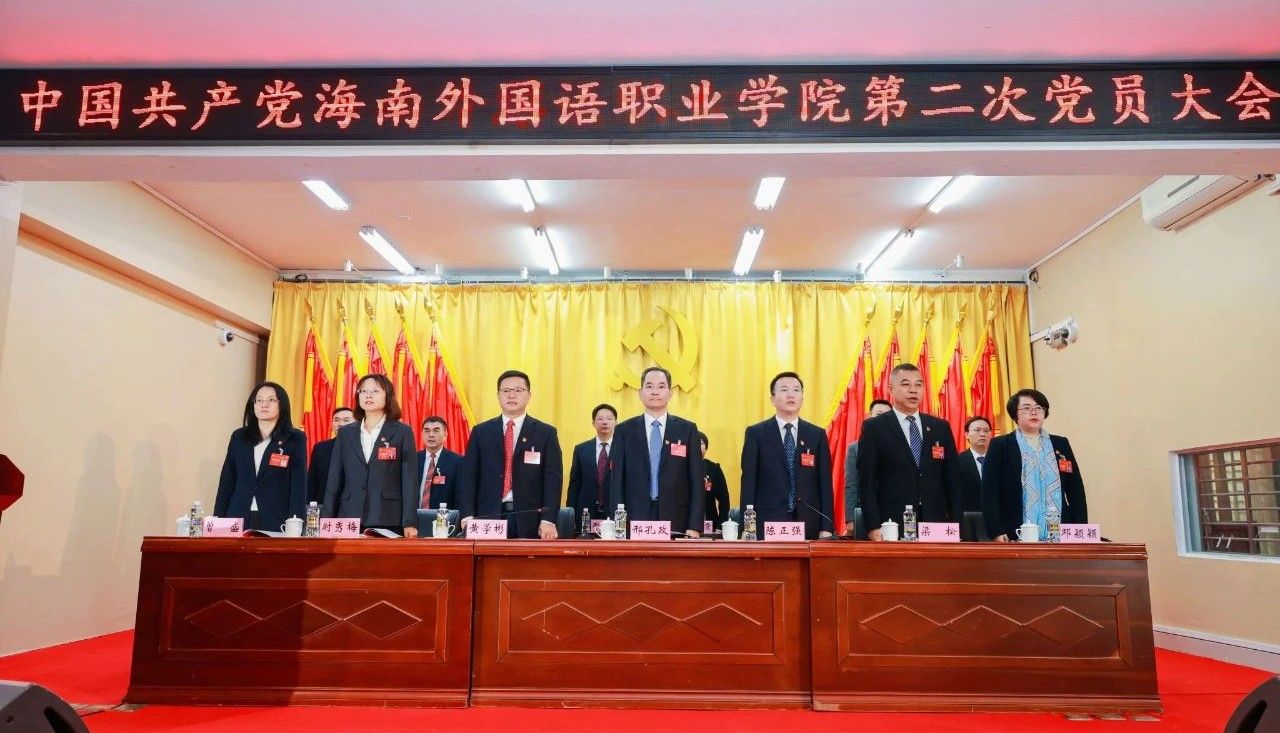 邢孔政强调,当前,我国正朝着全面建成社会主义现代化强国、实现第二个百年奋斗目标奋勇前进,海南自贸港建设处在成型起势、蓬勃兴起的关键阶段,海外院也迎来实现转型升级、加快发展的重要战略机遇期,全校上下要以第二次党员大会为新起点,总结过去、分析形势,谋求新发展。一要进一步突出政治引领,加强党对学校工作的全面领导。要把党的领导贯穿办学治校、教书育人全过程,积极探索与发展相适应的党建工作体系,以党的政治建设为统领,认真履行主体责任,促进党建与事业发展深度融合,以高质量党建引领学校高质量发展。要推进“清廉海外院”建设,将从严监督贯穿始终,进一步营造风清气正的干事创业环境;二要进一步聚焦立德树人,不断提高人才培养质量。要牢记为党育人、为国育才的初心使命,坚持不懈用习近平新时代中国特色社会主义思想铸魂育人,充分利用好海南自贸港建设对国际化外语人才需求的机遇,优化专业布局,强化内涵建设,加大厚植家国情怀、具有国际视野和跨文化交际能力、特色鲜明的“外语+”应用型人才培养力度,为重大国家战略和地方经济社会发展提供人才保障;三要进一步彰显办学优势,坚决扛起助力海南自贸港建设的使命担当。要紧贴海南自贸港建设需要,紧跟国际教育创新岛建设步伐,紧紧围绕自贸港国际化人才培养需求精准发力,积极参与和服务国家“一带一路”建设,拓展国际合作与交流,推动学校办学质量持续提升,为我国建设教育强国和中国特色自由贸易港扛起海外院担当、作出海外院贡献。