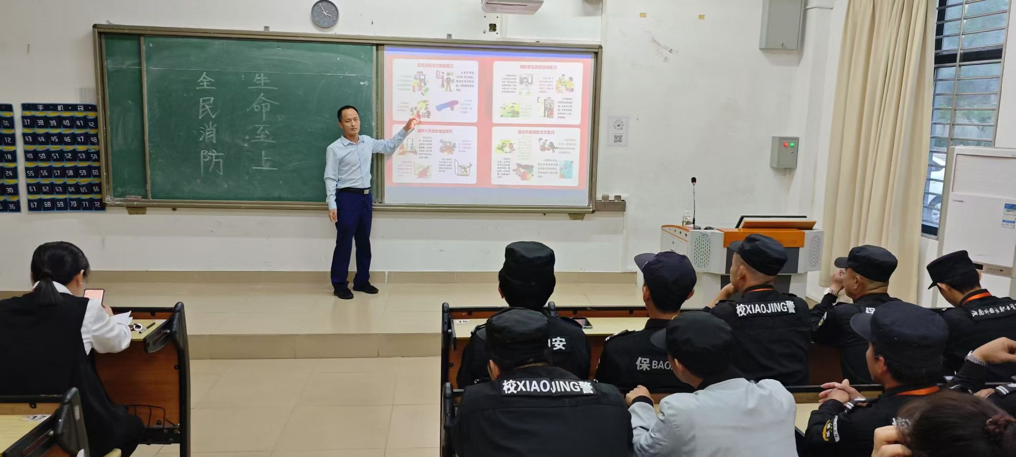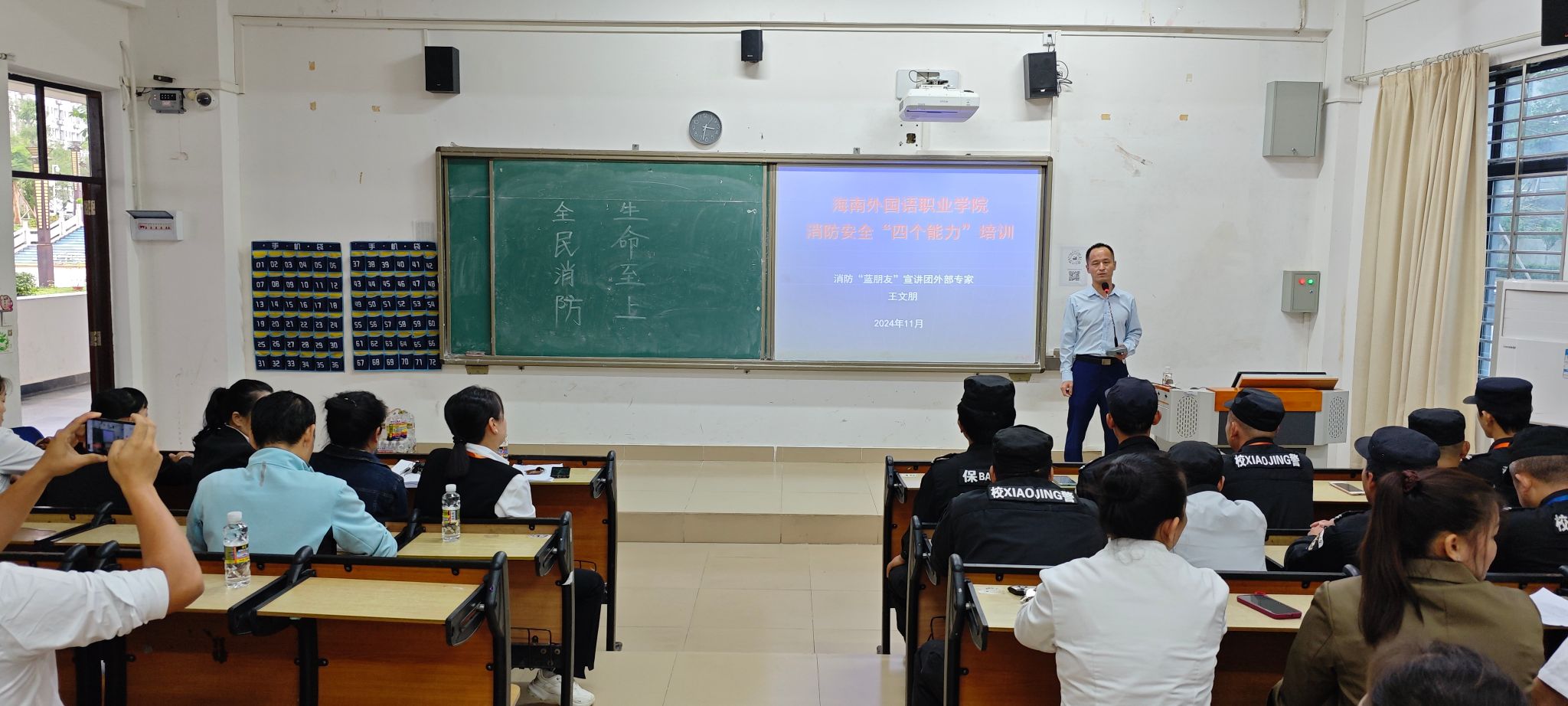 为提升物业和食堂人员消防安全意识,提高初期火灾处置能力,11月23日下午,后勤处在综合楼BE102教室举办了物业和食堂人员消防安全“四个能力”培训班。