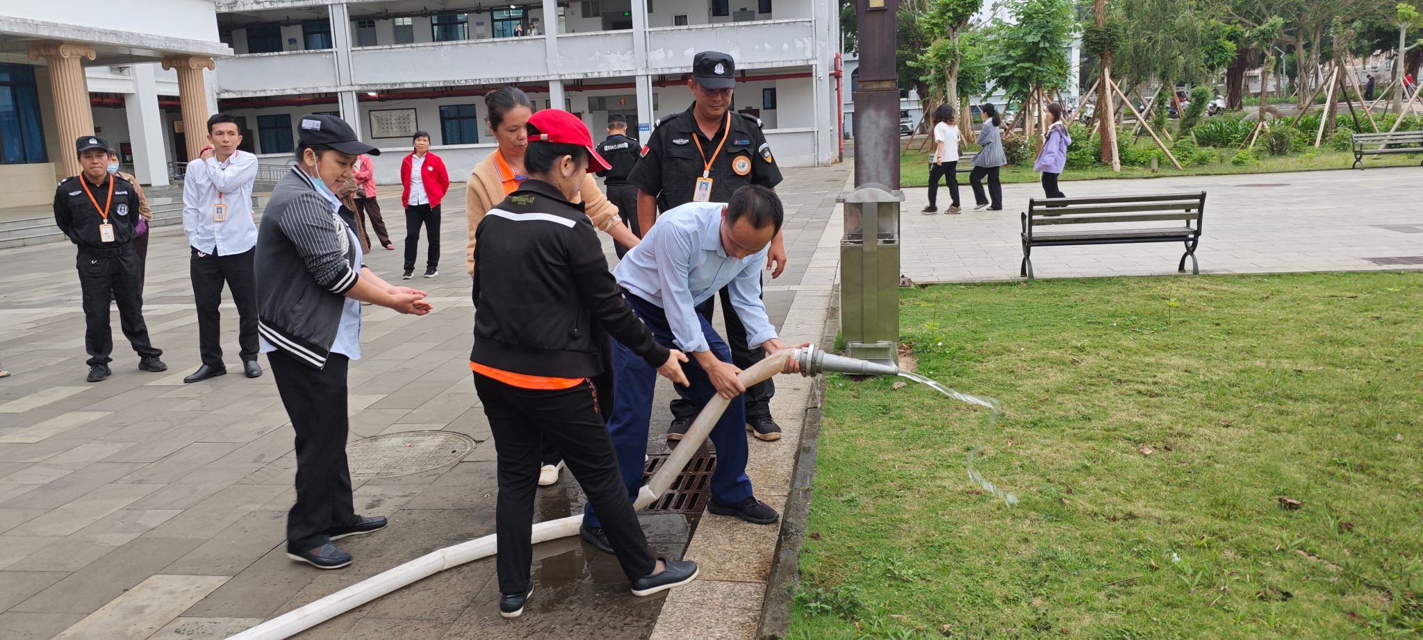 当天下午,消防“蓝朋友”宣讲团外部专家根据学校实际,结合火灾案例,对学校物业和食堂人员进行了消防安全“四个能力”培训,领学了《海南省消防安全责任制规定》《教育系统重大事故隐患判定指南》消防部分条款,室内授课结束后进行了室外灭火实操。