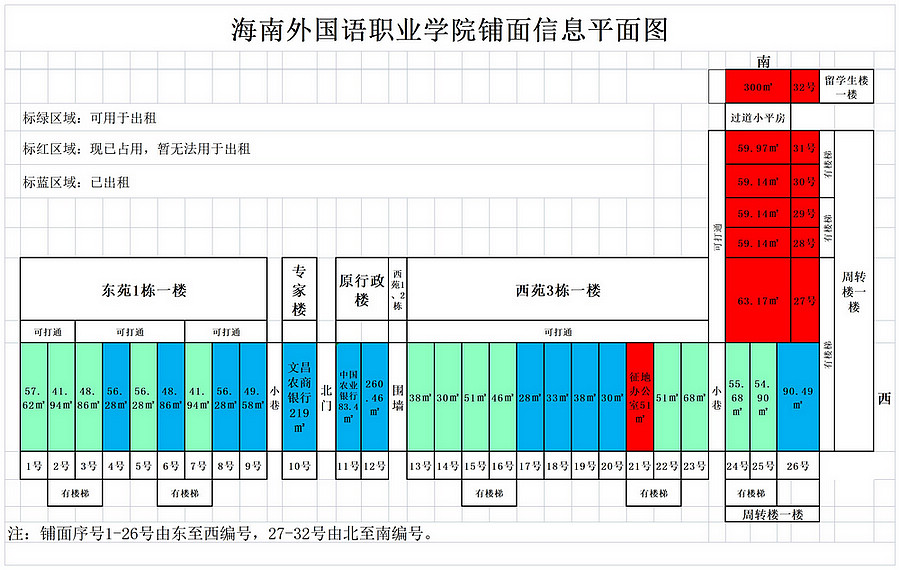报经海南省教育厅同意,学院现将北门13间铺面面向社会公开招租,现将有关具体事项公告如下:
