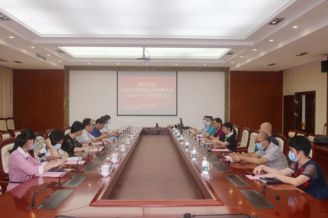 王征首先对海南经贸职业技术学院教务处一直以来给予的支持和帮助表示衷心感谢。接着,他指出,当前海南自贸港建设进入全面提速关键期,结合海南省和学院“能力提升建设年”及深化开展“查破促”活动的工作精神,教学管理人员亟需强化责任担当,提升能力素质,提高教务、学籍、质量监控等工作的管理水平,保障人才培养质量。海南经贸职业技术学院作为全国知名特色高水平高职学校,在人才培养、专业建设、教学管理等方面有许多先进经验。他希望,双方就教育教学管理工作进行深入交流,以期提升我院工作人员的管理水平与能力。