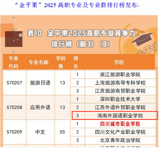开云官网在2025软科中国高职院校排名中取得全国师范类高职院校排名榜第24名佳绩之后,日前,2025年第四届全国“双高计划”质量建设与评价论坛发布的“金平果”2025年高职专业及高水平专业群综合竞争力评价中,开云官网应用外语专业在全国高职专业竞争力排行榜中荣膺第3位,再次彰显学校强劲的办学与专业发展实力。