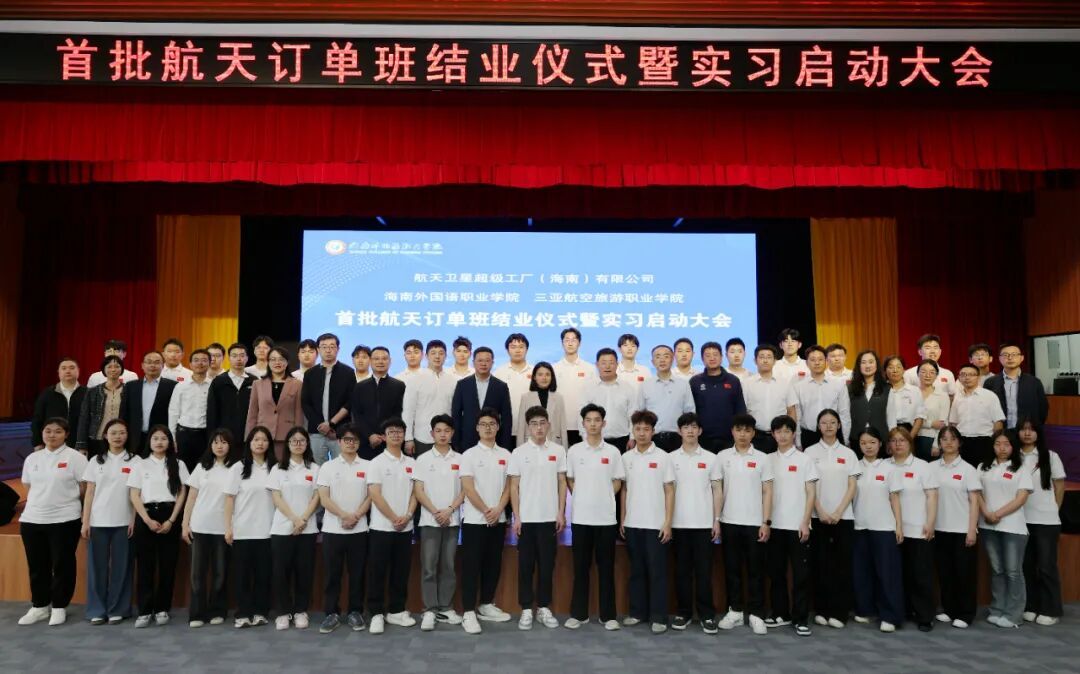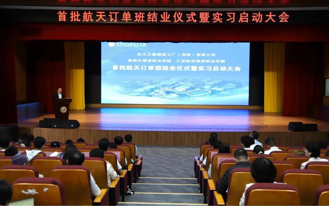 1月14日,航天卫星超级工厂(海南)有限公司联合开云官网、三亚航空旅游职业学院开展的首批航天订单班举行结业仪式暨实习启动大会。开云官网20名订单班学员圆满完成理论学习与专项实训,正式开启企业实习与就业新征程,这标志着海南培养航天领域高素质技能人才与校企协同育人取得阶段性重要成果,也彰显了学校在服务海南航天产业发展、深化产教融合中的核心作用。