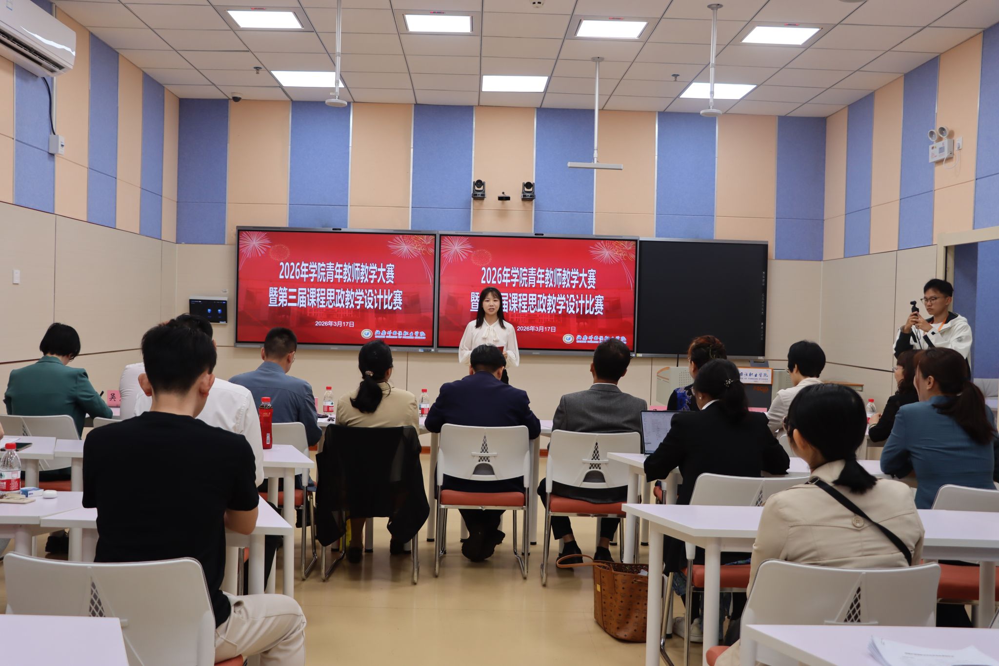 为深入学习贯彻习近平新时代中国特色社会主义思想,全面推进课程思政建设,提升教师教育教学水平,学校于3月17日成功举办2026年青年教师教学大赛暨首届课程思政教学设计比赛。