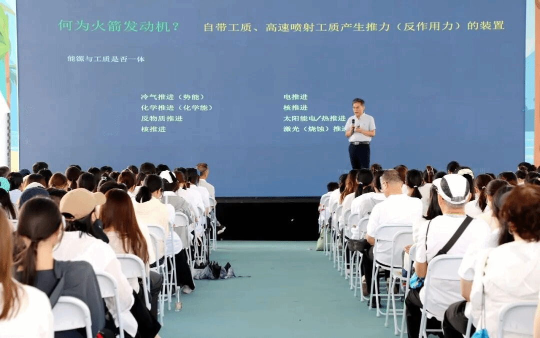 活动现场,航天科技集团六院副总研究师吴宝元应邀走进瑶光观礼台,为师生带来《航天动力解码》主题讲座。“发动机有哪些类型?”“火箭发动机与航空发动机有何区别?”“嫦娥六号任务使用了哪些液体发动机?”吴宝元以专业而生动的方式,解密航天动力背后的科学原理,为在场师生呈现了一场知识性与趣味性并存的航天科普盛宴,让大家从“见证发射”的视觉震撼,深入到对祖国航天事业背后“科技报国、精益求精”精神的理解,为这堂特殊的思政课增添专业厚度与思想深度。