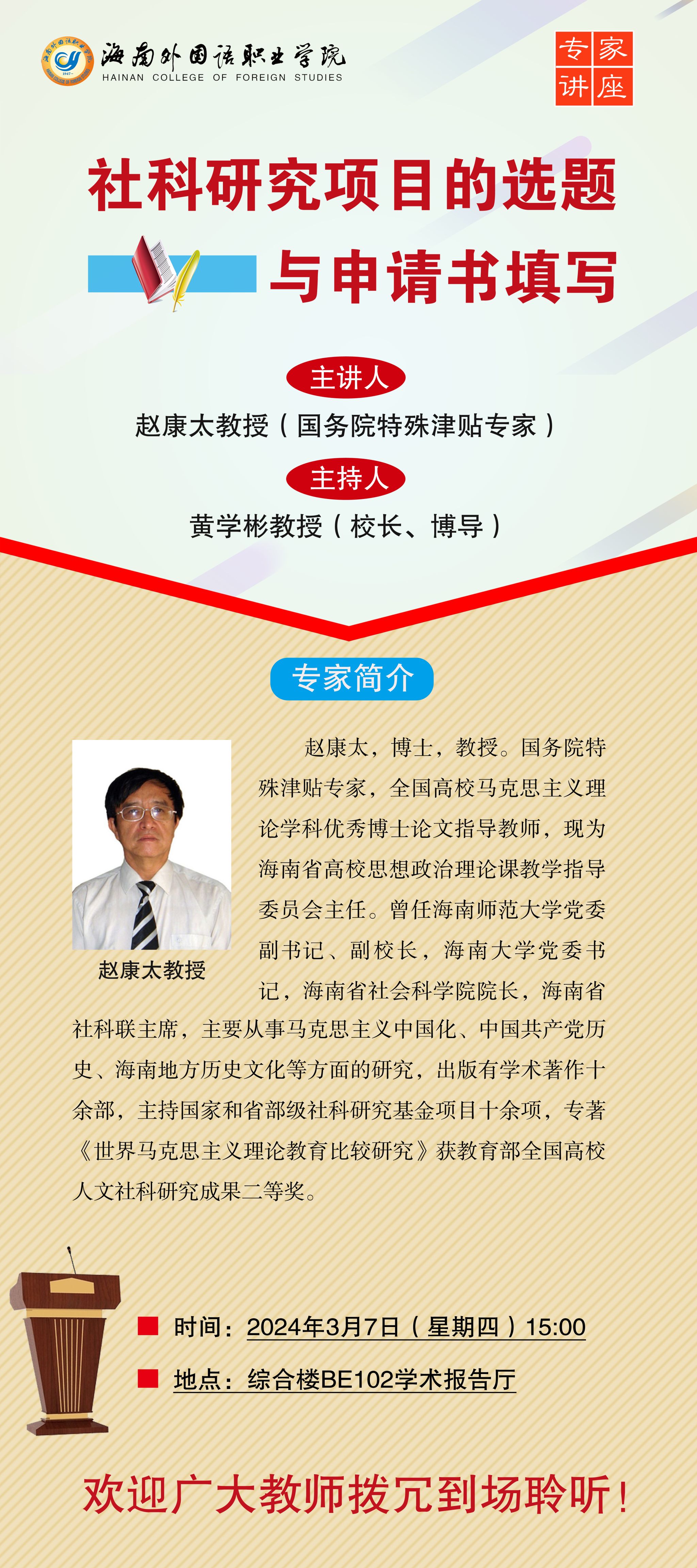 专家讲座预告